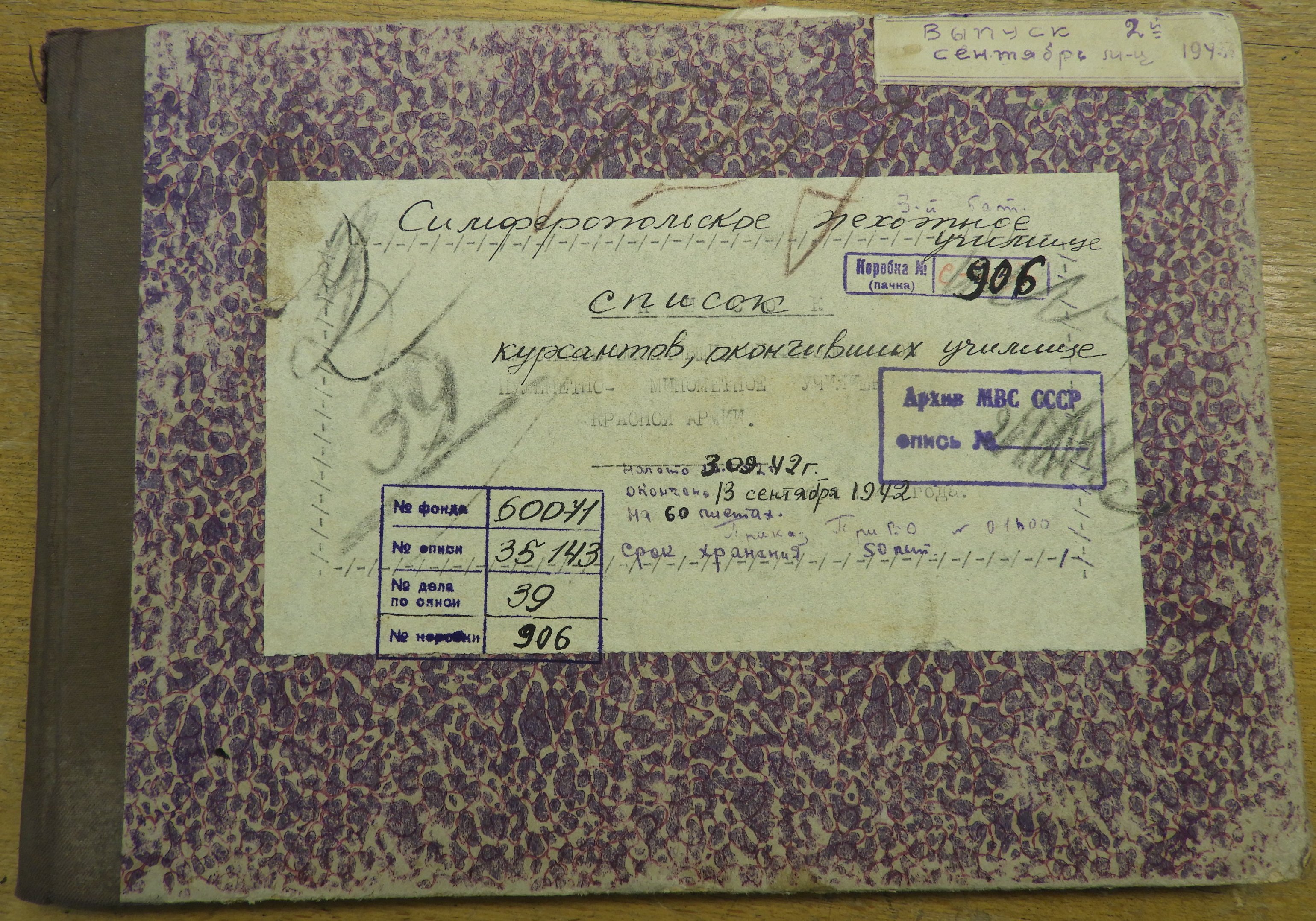 Выпущен 331 человек приказом ПриВО №01600 от 13.09. 1942 г. Из них - 117 лейтенантов, остальные - младшие лейтенанты